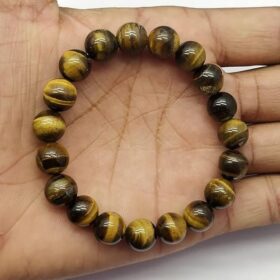 Natural Yellow Tigers Eye 12mm Round Shape Smooth Cut Beads Stretchable Bracelet For Men & Women. Unisex Bracelet For Healing, Meditation, Prosperity, Gift & Luck