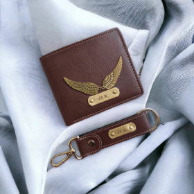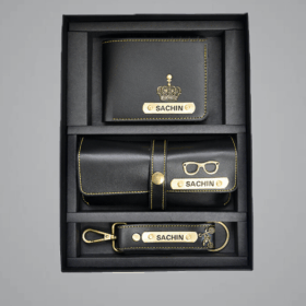 Personalized Name Printed Pen & Keychain Gift Set | Gold Flakes Pen Combo | Premium Black & Golden Design